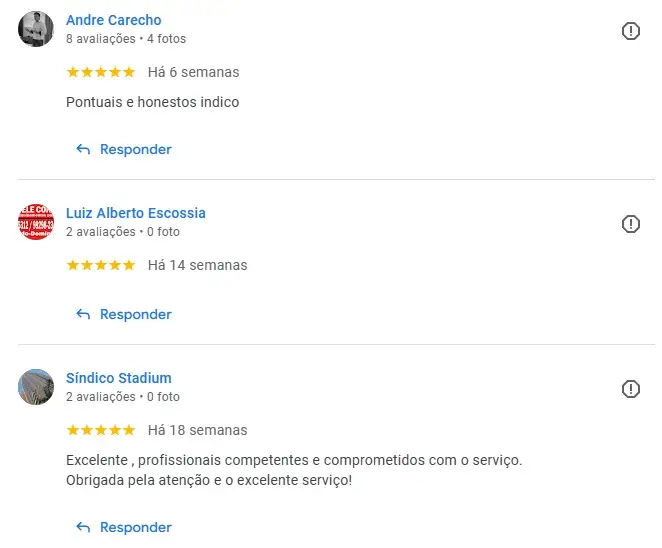 Abaixo estão algumas avaliações reais de nossos clientes capturadas pelo Google Meu negócio